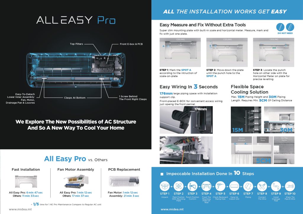 The Midea All Easy Pro MSEPB-19CRFN8 2.0HP is built for larger rooms and open areas, delivering high cooling performance with easy installation and maintenance. With its energy efficiency and smart-ready features, it ensures comfort and flexibility for long-term use.