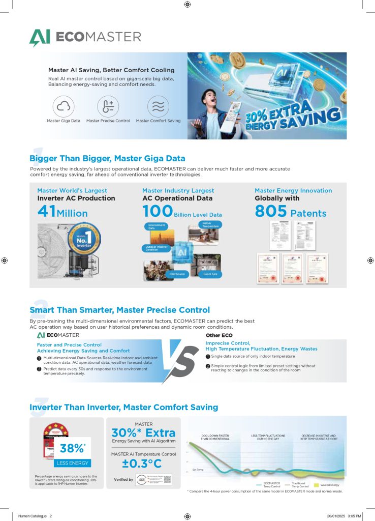 - Energy-Saving Performance – EcoMaster inverter cuts energy usage by up to 30%.
