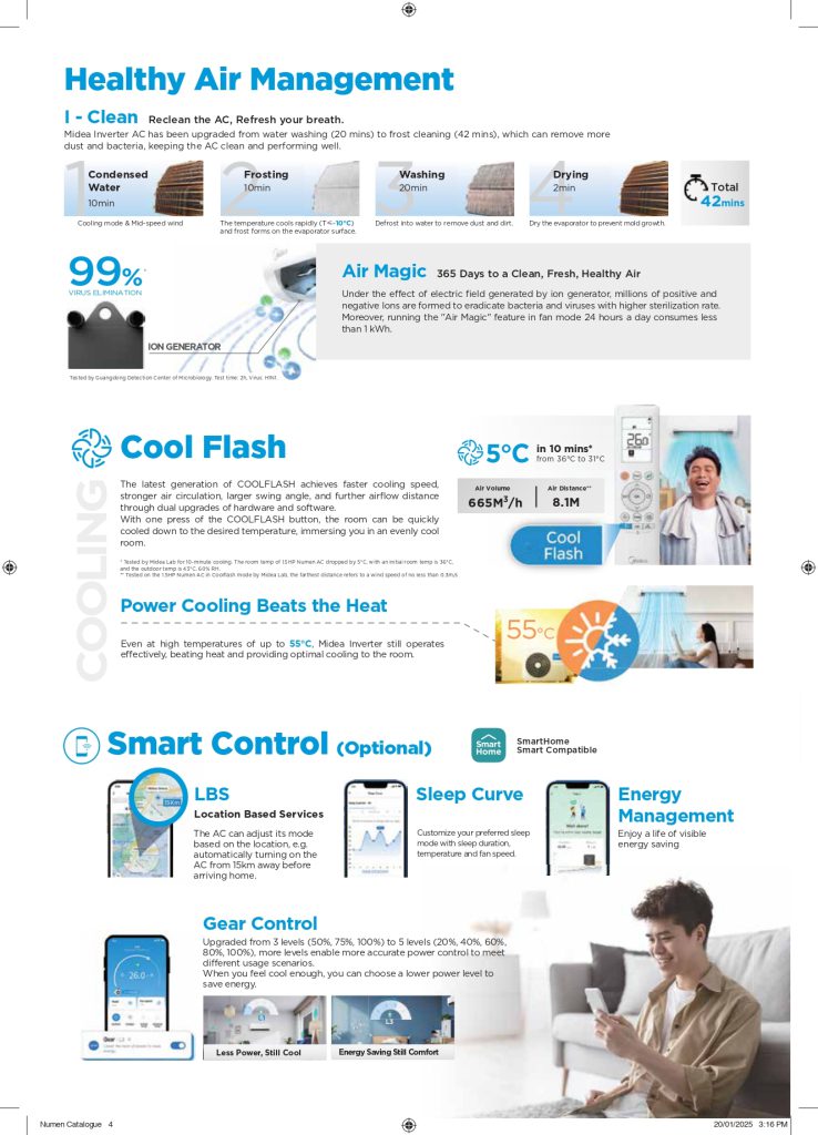 The Midea Numen MSNE-19CRFN8 2.0HP is built for larger rooms, combining strong cooling power with durability and energy efficiency. With wide voltage operation, air purification, and smart features, it guarantees comfort and reliability for the whole family.