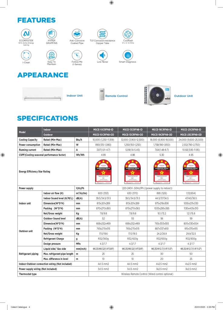 The Midea Celest MSCE-10CRFN8 1.0HP Inverter Air Conditioner is designed for compact spaces, offering efficient cooling, energy savings, and quiet performance. With smart inverter technology and durable protection, it ensures long-term comfort in bedrooms or small rooms.